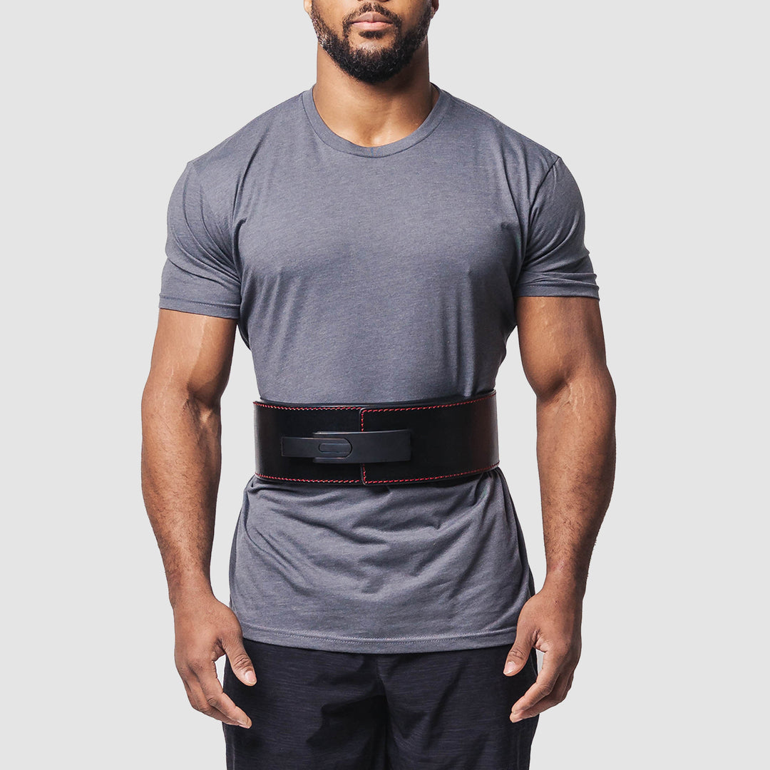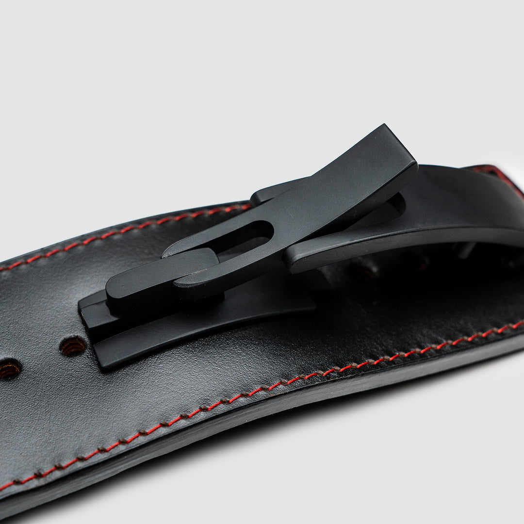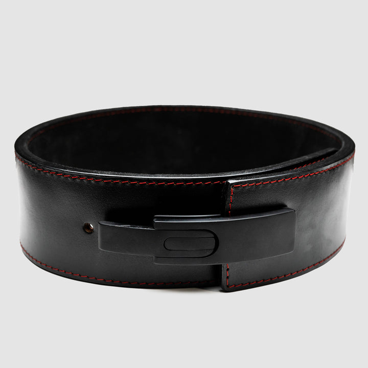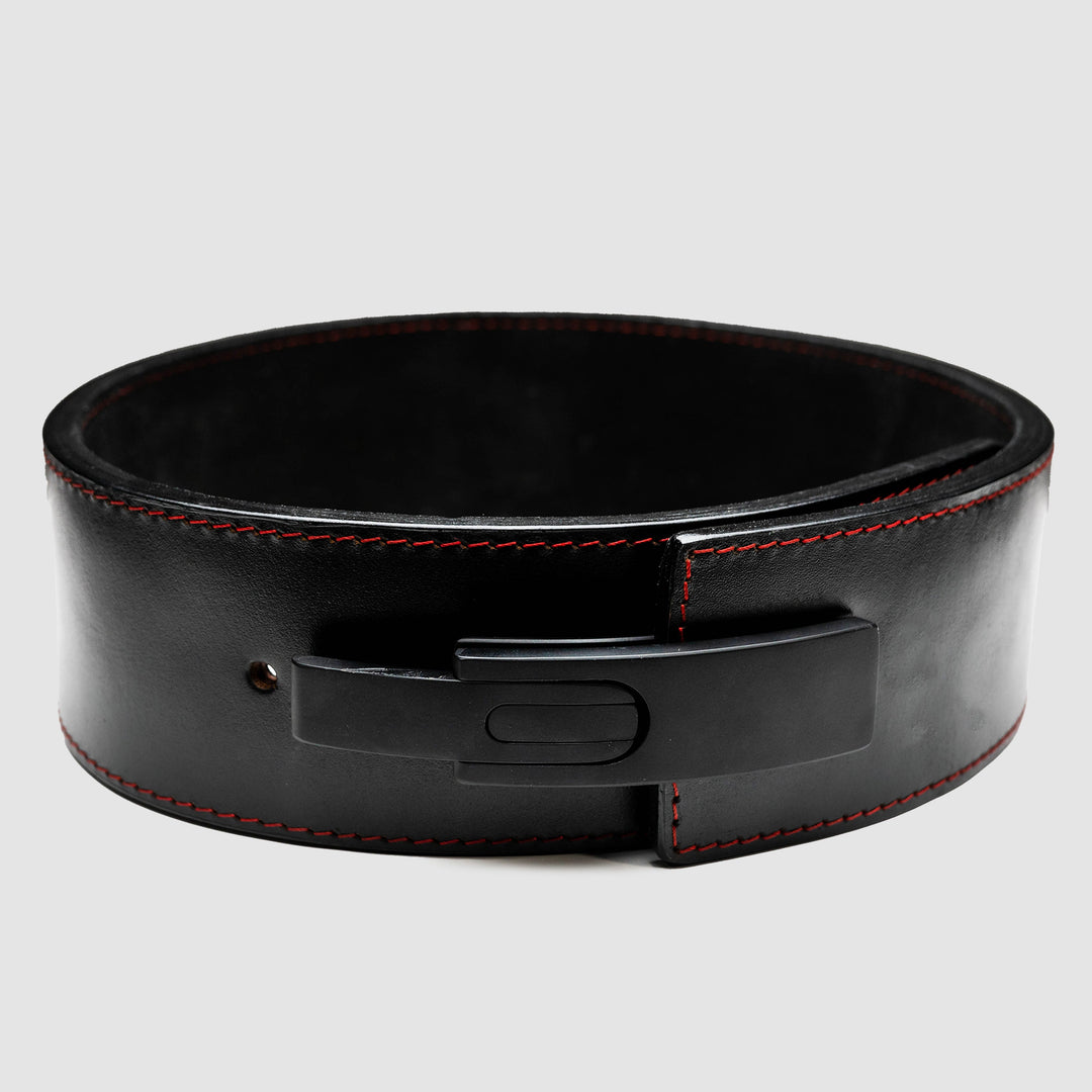 The Strong Lever Belt is one of the strongest and most comfortable lever belts on the market. Made from 100% genuine sole leather, The Strong Lever Belt is a firm, ultra-durable, water-resistant leather belt made to conform to your body and protect you when lifting heavy. Sleek aesthetic features a black lever on a black belt with red stitching and a debossed Strong logo.