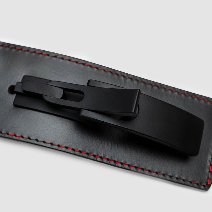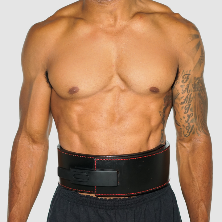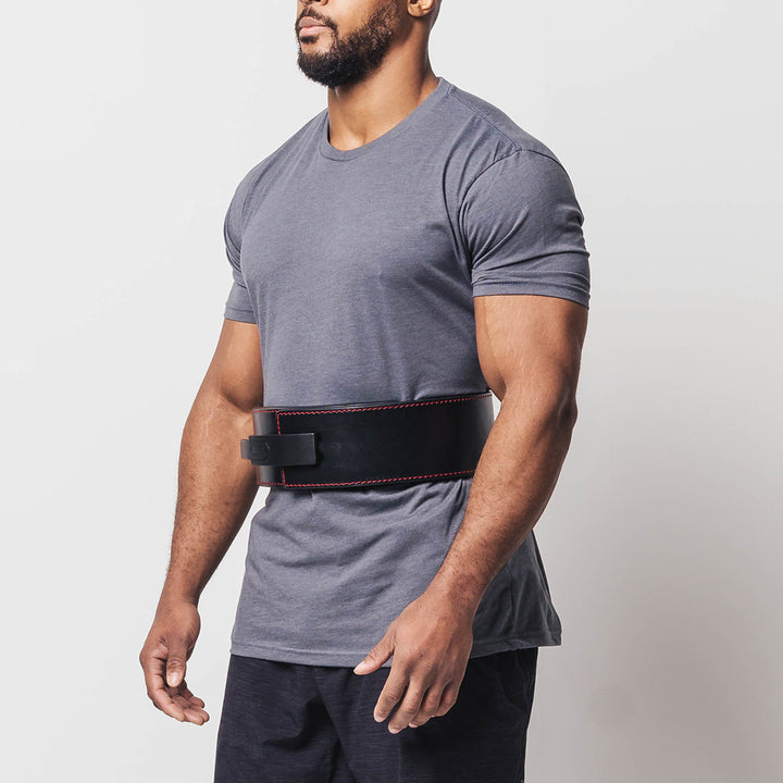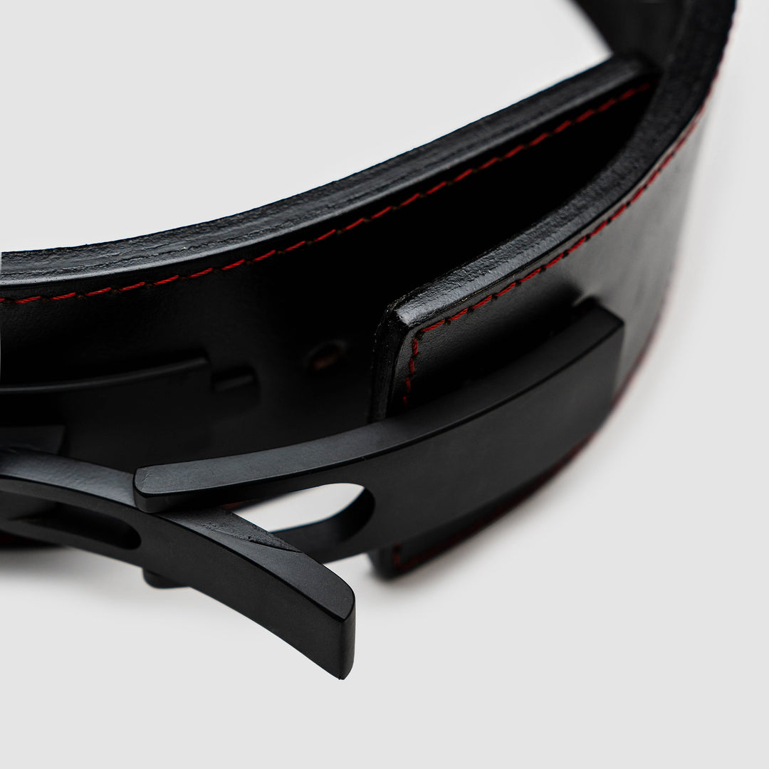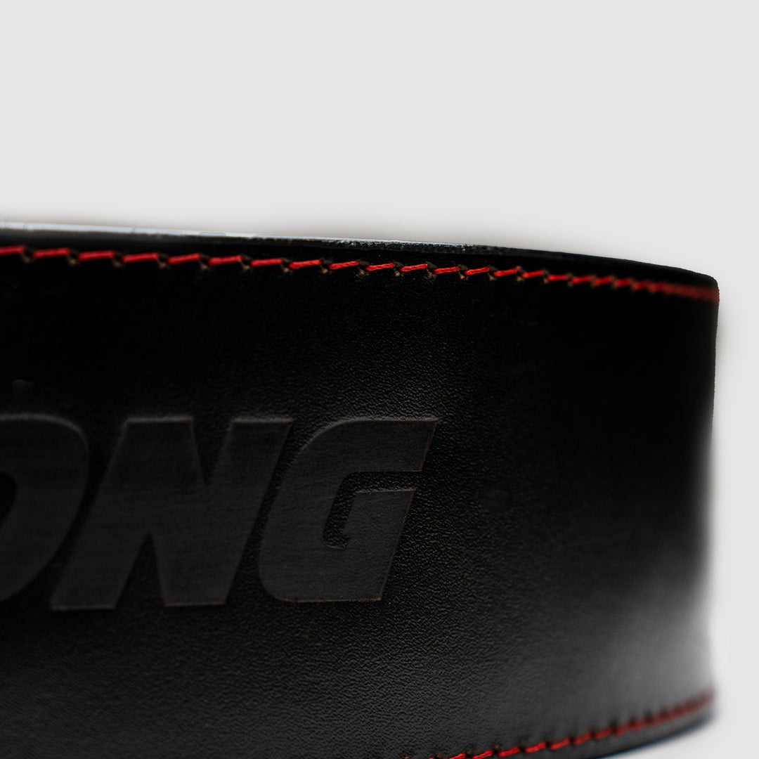 The Strong Lever Belt is one of the strongest and most comfortable lever belts on the market. Made from 100% genuine sole leather, The Strong Lever Belt is a firm, ultra-durable, water-resistant leather belt made to conform to your body and protect you when lifting heavy. Sleek aesthetic features a black lever on a black belt with red stitching and a debossed Strong logo.